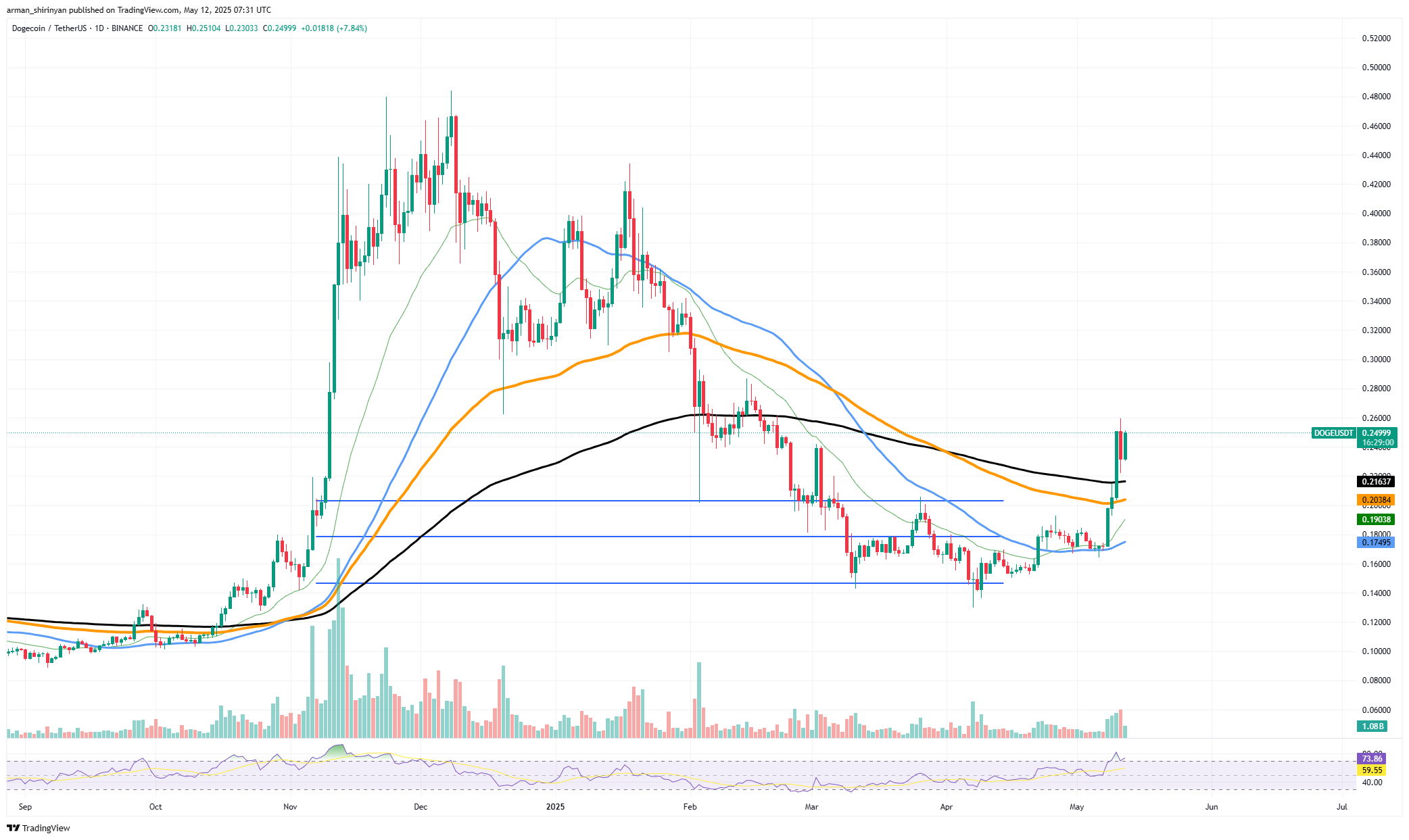 Sustaining this support could propel DOGE towards $0.30. Conversely, a rapid retracement to $0.20 or even $0.19 is possible if unlock-related selling pressure emerges. Market participants should remain vigilant. Although relatively small for DOGE, unlocks of this magnitude can shift market sentiment, especially when combined with price saturation or broader market uncertainty.