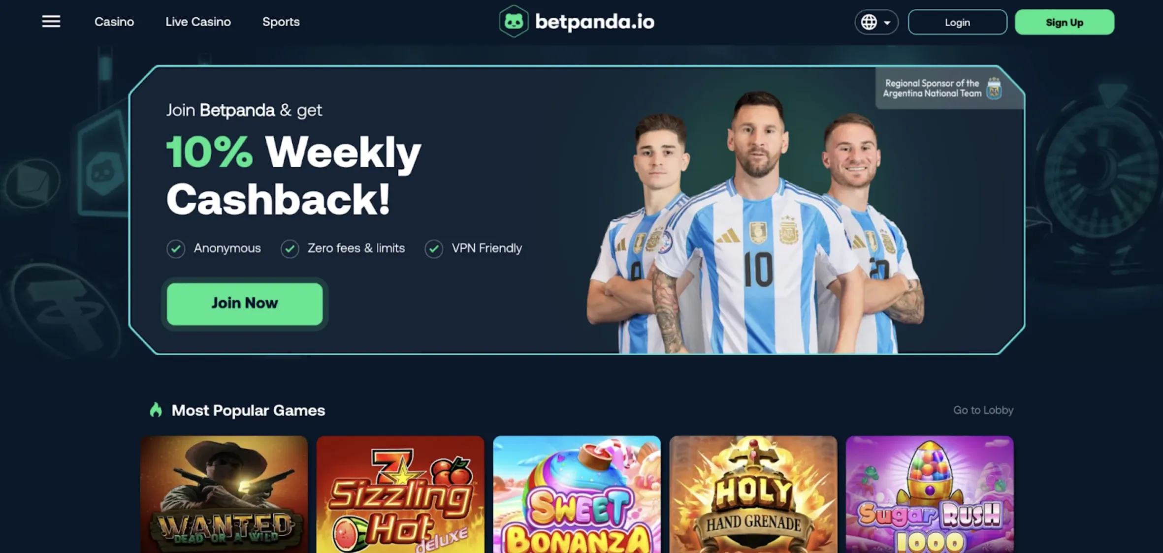 BetPanda integrates the Bitcoin Lightning Network for near-instant deposits and withdrawals with minimal fees. Its 5,000+ games, including Aviator and various live casino options, offer significant variety. Its no-KYC policy and weekly 10% cashback are attractive features.