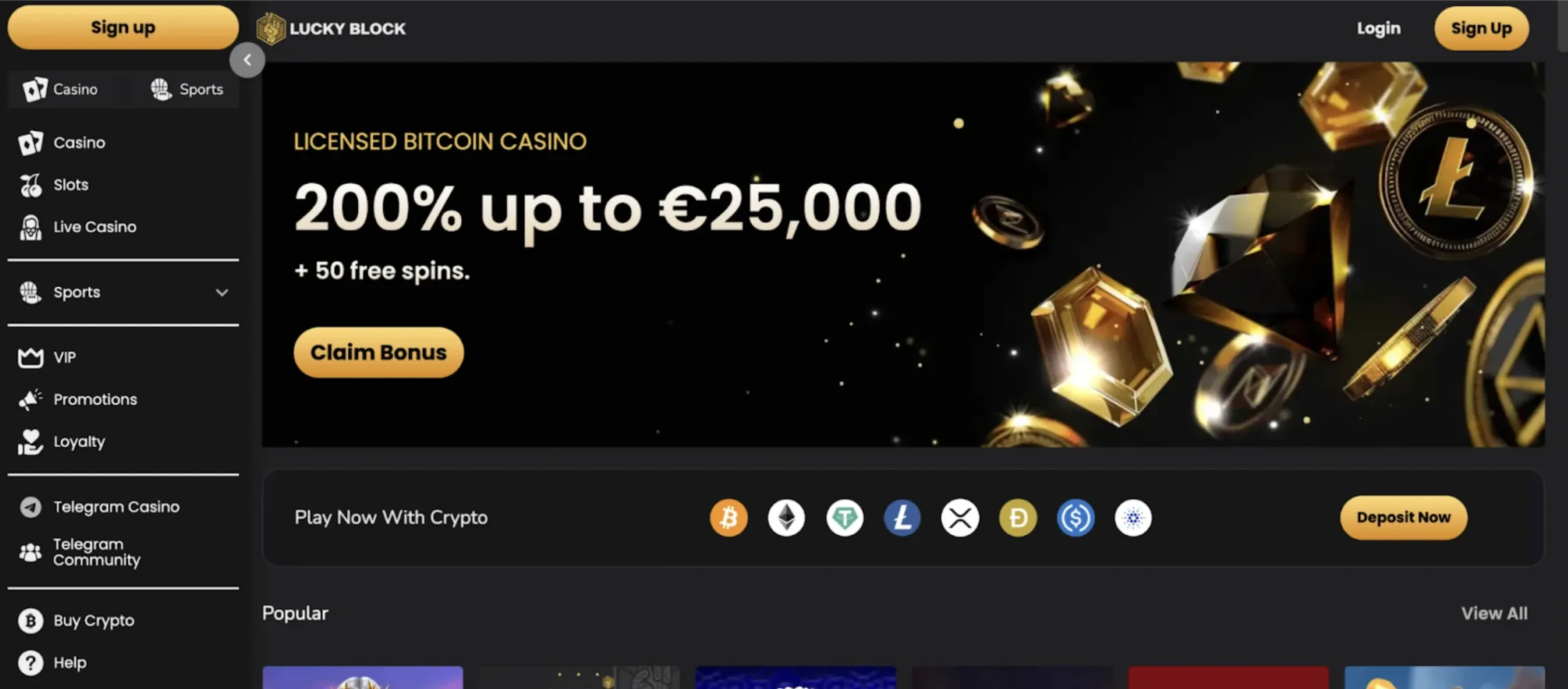 Lucky Block stands out with its massive welcome package (200% bonus up to $25,000 and 50 free spins), 4,000+ games, and a dedicated sportsbook. Its Telegram integration keeps players updated on jackpots and bonuses.
