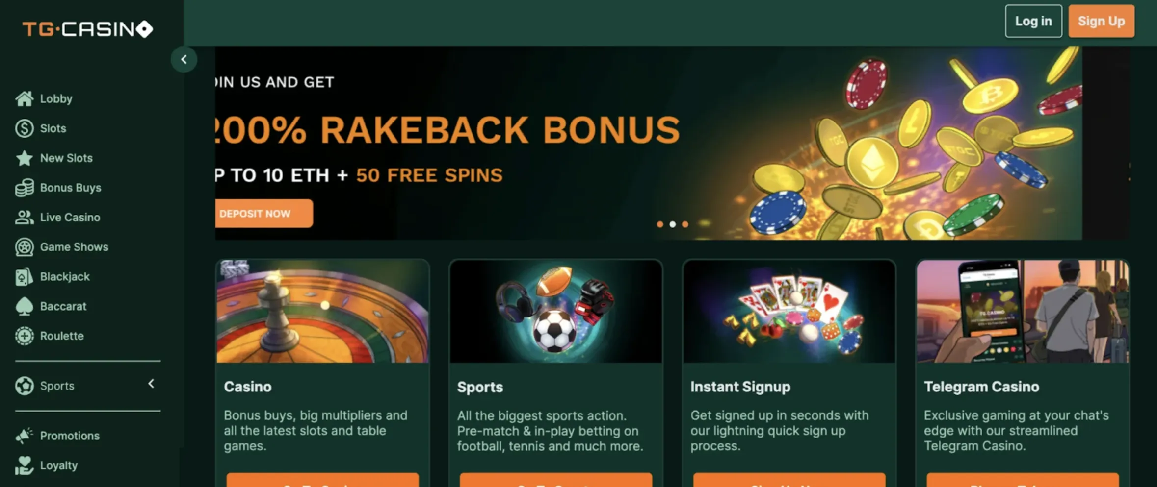 TG.Casino, the world's first Telegram-operated casino, offers instant sign-up within the Telegram app. It rewards users generously with staking options using its $TGC token and a competitive welcome bonus.