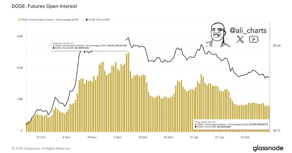 Analyst Ali Martinez suggested that DOGE maintaining support between $0.16 and $0.19 could potentially lead to a price increase to $4. However, current bearish sentiment has dampened investor confidence.