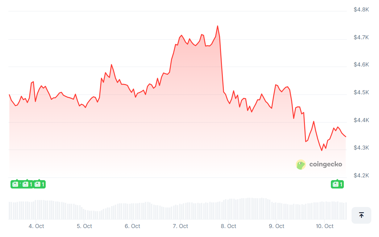 The latest Ethereum (ETH) price forecast shows steady progress toward the $5,000 range, with solid support between $4,300 and $4,400. Analysts believe a breakout above $4,650 could open the door to $5,200 in the near term. Medium-term expectations place potential gains between $6,500 and $7,500 by the end of the year if institutional inflows remain strong and global economic conditions stay stable. Some extended projections are even more ambitious, with targets reaching between $12,000 and $15,000 in the next major cycle.