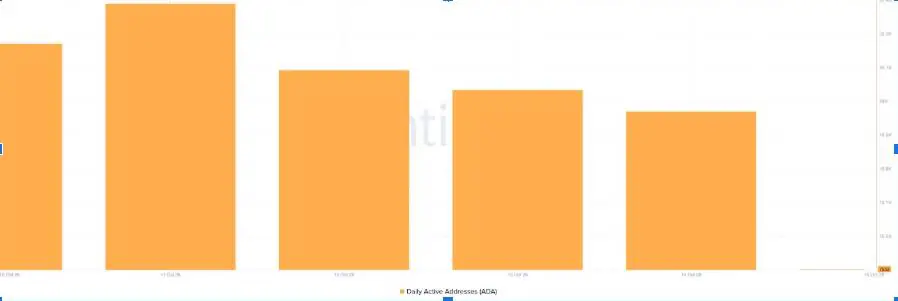 Cardano is experiencing pressure on its price as the network is not able to keep its users active. During the last week, ADA has not been able to surpass the resistance of $0.7242, and at present it is trading at about $0.69. According to Santiment data, active ADA addresses decreased by 31% since October 11, which shows that less people actively participate in transactions on the network.