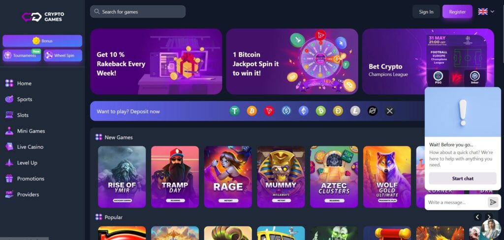 Crypto Games stands out with no maximum withdrawal limit, which is a significant advantage for high-volume players. The platform ensures instant deposits and withdrawals, with payouts typically processed in under 15 minutes. It supports provably fair games, allowing players to verify the integrity of each outcome.