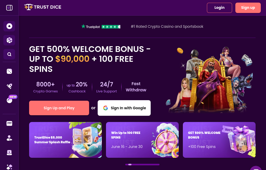 TrustDice is licensed by Curaçao and employs robust security measures such as SSL encryption, two-factor authentication (2FA), cold storage for crypto funds, and regular security audits. Its provably fair technology further ensures the transparency of game results. The user interface features a distinctive purple-themed design that is both modern and visually engaging. The layout is clean and well-organized, with fast page loading times and an easily accessible search bar. The mobile browser experience is excellent, with a responsive design and smooth streaming for live dealer games. Customer support is available 24/7 through multiple channels, including live chat (with response times typically under two minutes), email (support@trustdice.com), a detailed Help Center with FAQs, and active community forums. Support agents are consistently described as knowledgeable, responsive, and efficient.