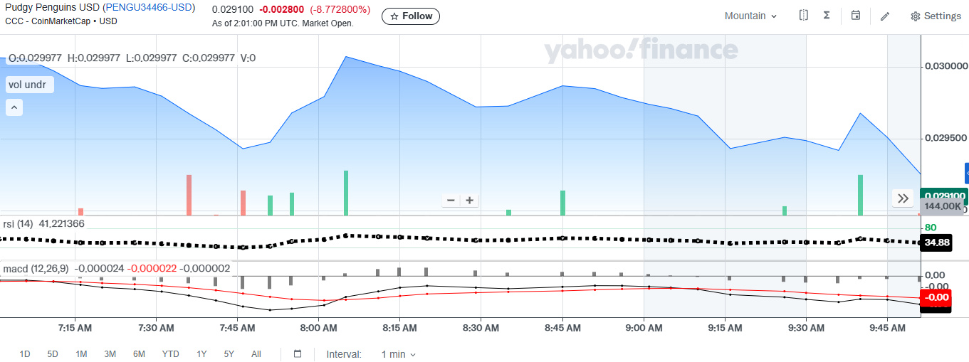 - Pudgy Penguins is trading below 0.0291 with signs of oversold conditions, but an active community prevents $Pudgy Penguins from falling off the speculative radar.