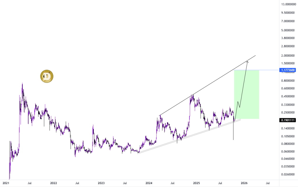 That’s a classic sign of accumulation. The DOGE chart looks similar to the structure that formed before Dogecoin’s explosive run in 2021. The longer this base holds, the stronger the eventual breakout tends to be.