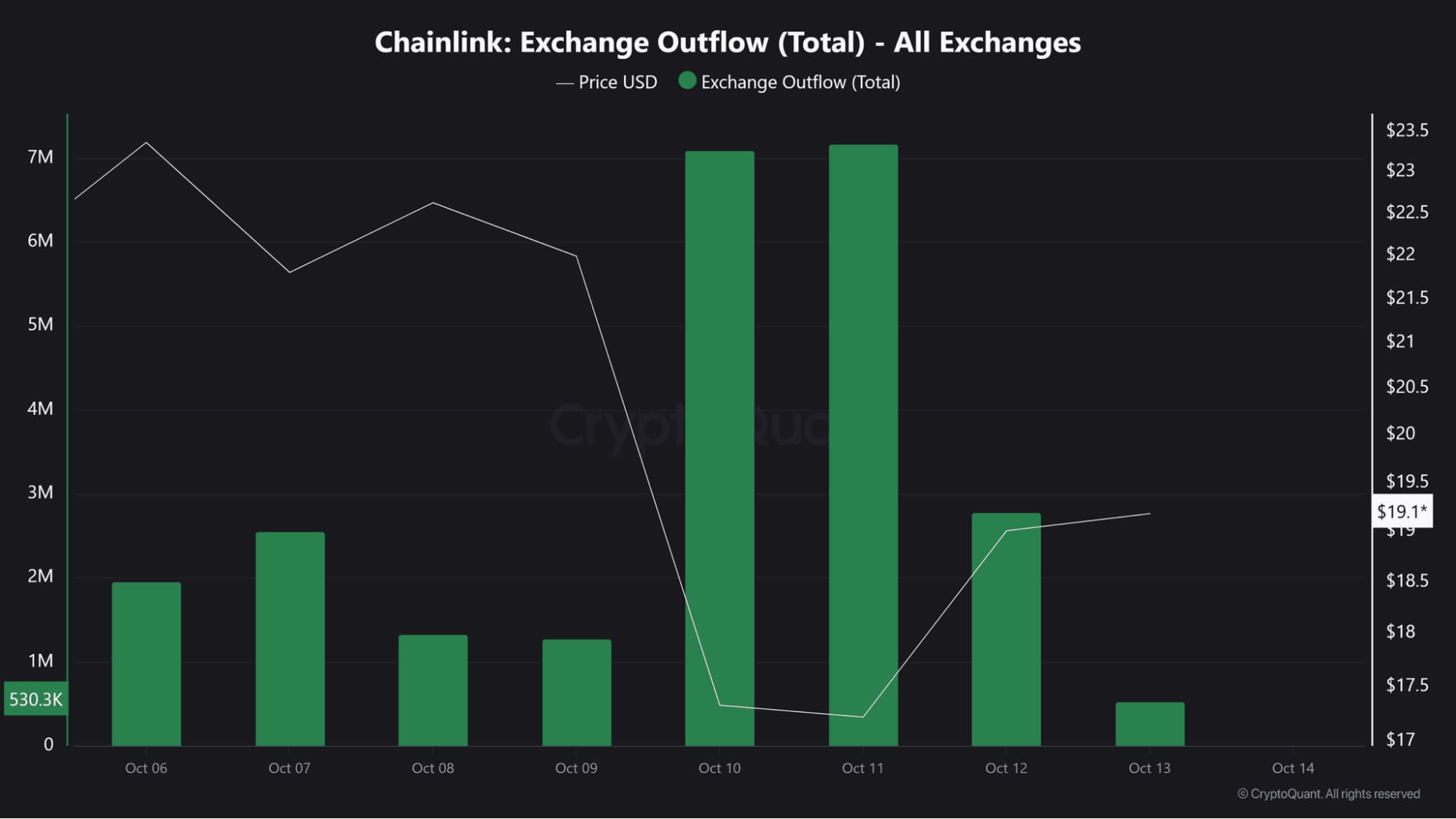 Whale orders spiked during the recent dip, resembling the behavior witnessed ahead of prior rallies. Analysts remain bullish on Chainlink price, with a target of retesting $24 if consolidation persists.