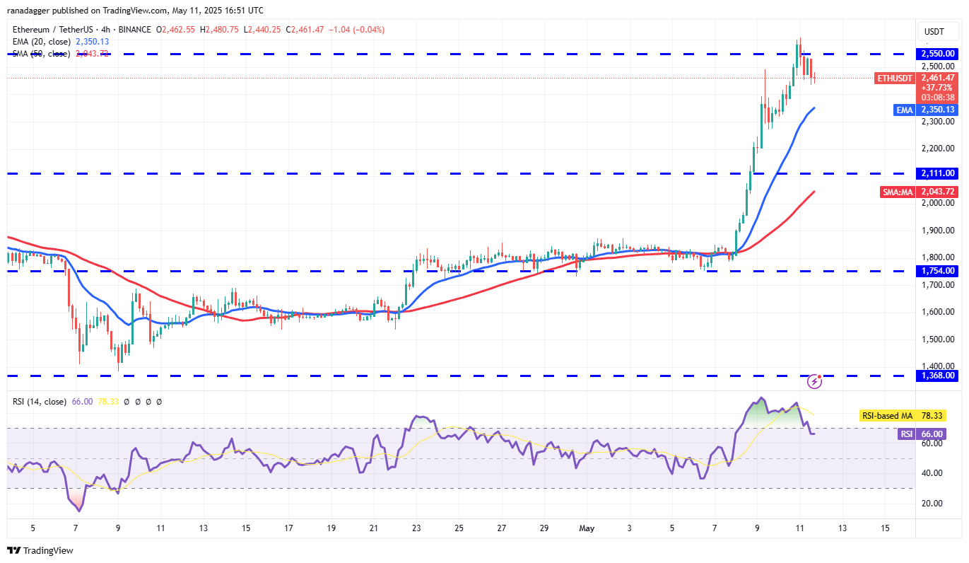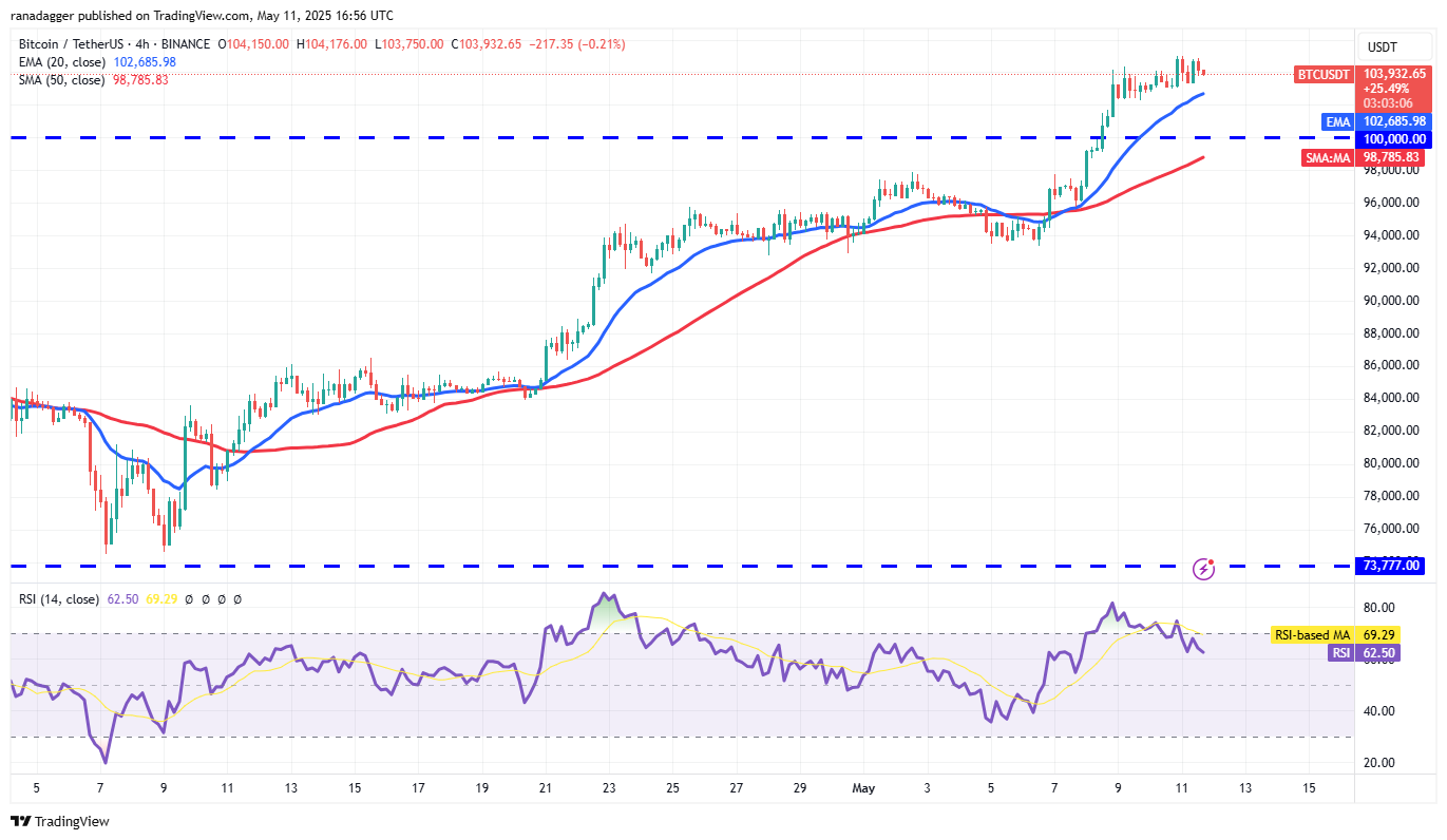 While the price continues to rise, bears are likely to fiercely defend the $107,000 to $109,588 zone. A price reversal from this area might find support at the 20-day EMA. A bounce from this EMA would signal sustained bullish momentum, increasing the likelihood of a breakout above $109,588.
