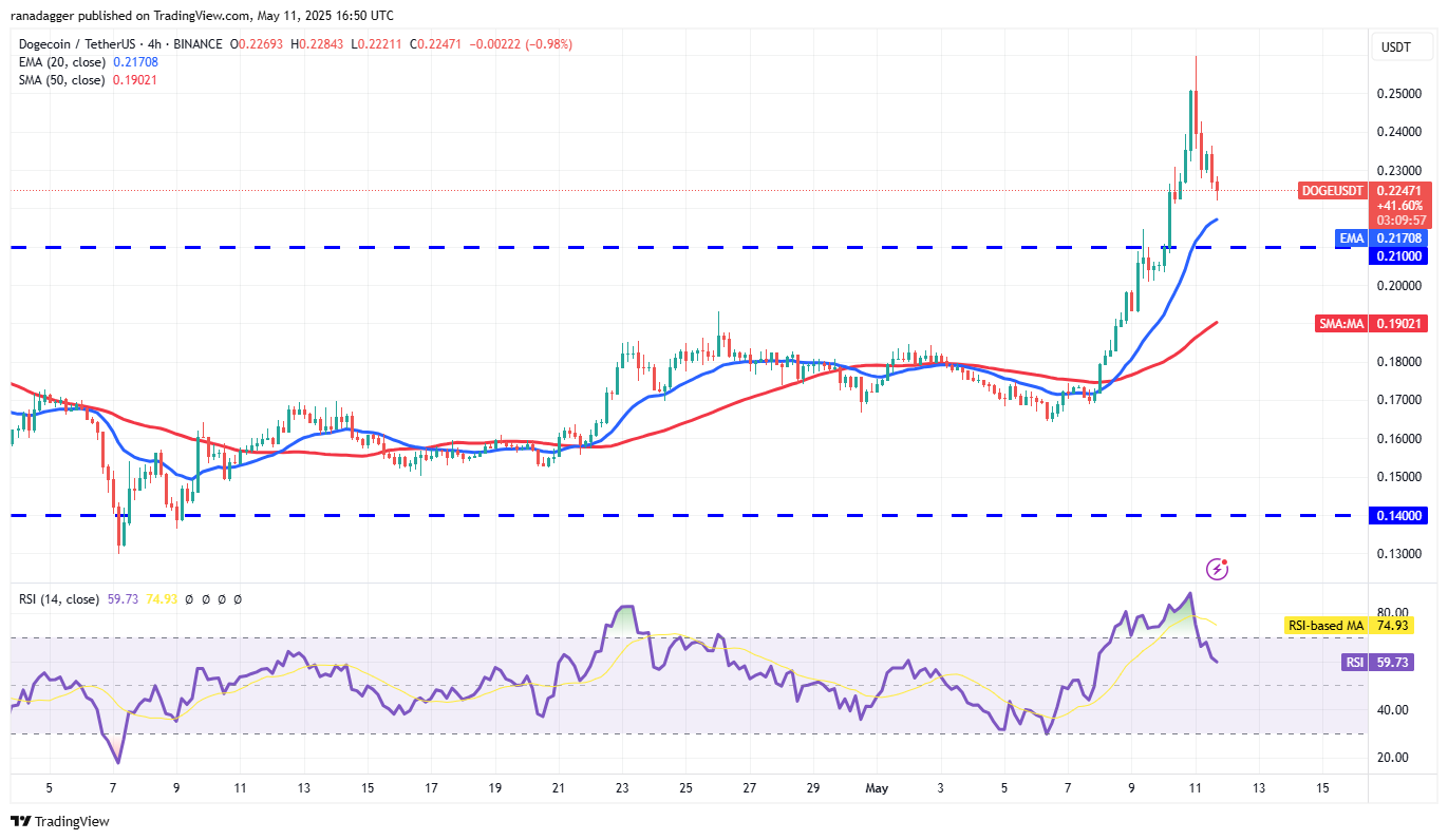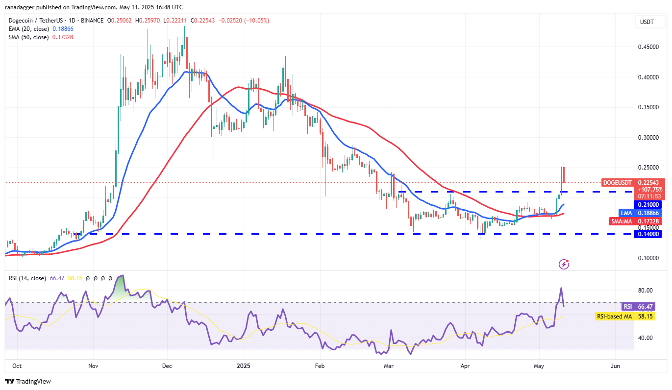 Dogecoin (DOGE) surpassed the $0.21 resistance on May 10th, signaling a short-term trend change.