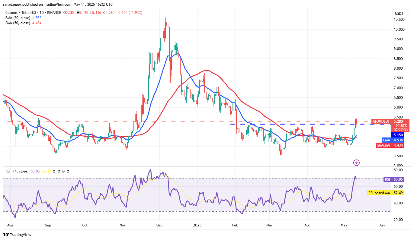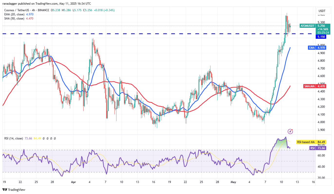If buyers maintain the price above $5.15, the ATOM/USDT pair could rally to $6.50. Sellers might try to halt the move at $6.50, but a sustained bullish push could take the pair to $7.50.