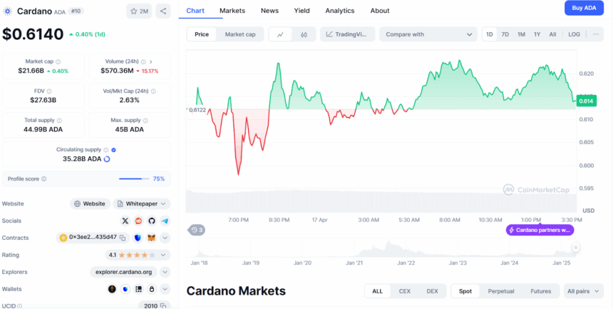Cardano recently touched a monthly low of $0.5165 but has since demonstrated strength, currently trading around $0.6153 (after a slight 0.40% dip).