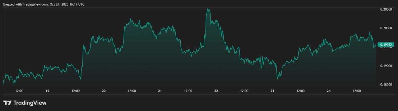 Dogecoin (DOGE), the original meme coin, still enjoys one of the strongest communities in crypto. It currently trades around $0.19 USD with a market capitalization of approximately $30 billion, keeping it among the top ten largest cryptocurrencies.