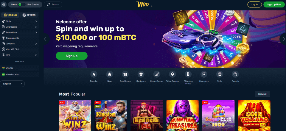 6. Winz.io: Zero Wagering Requirements and Extensive Game Library
