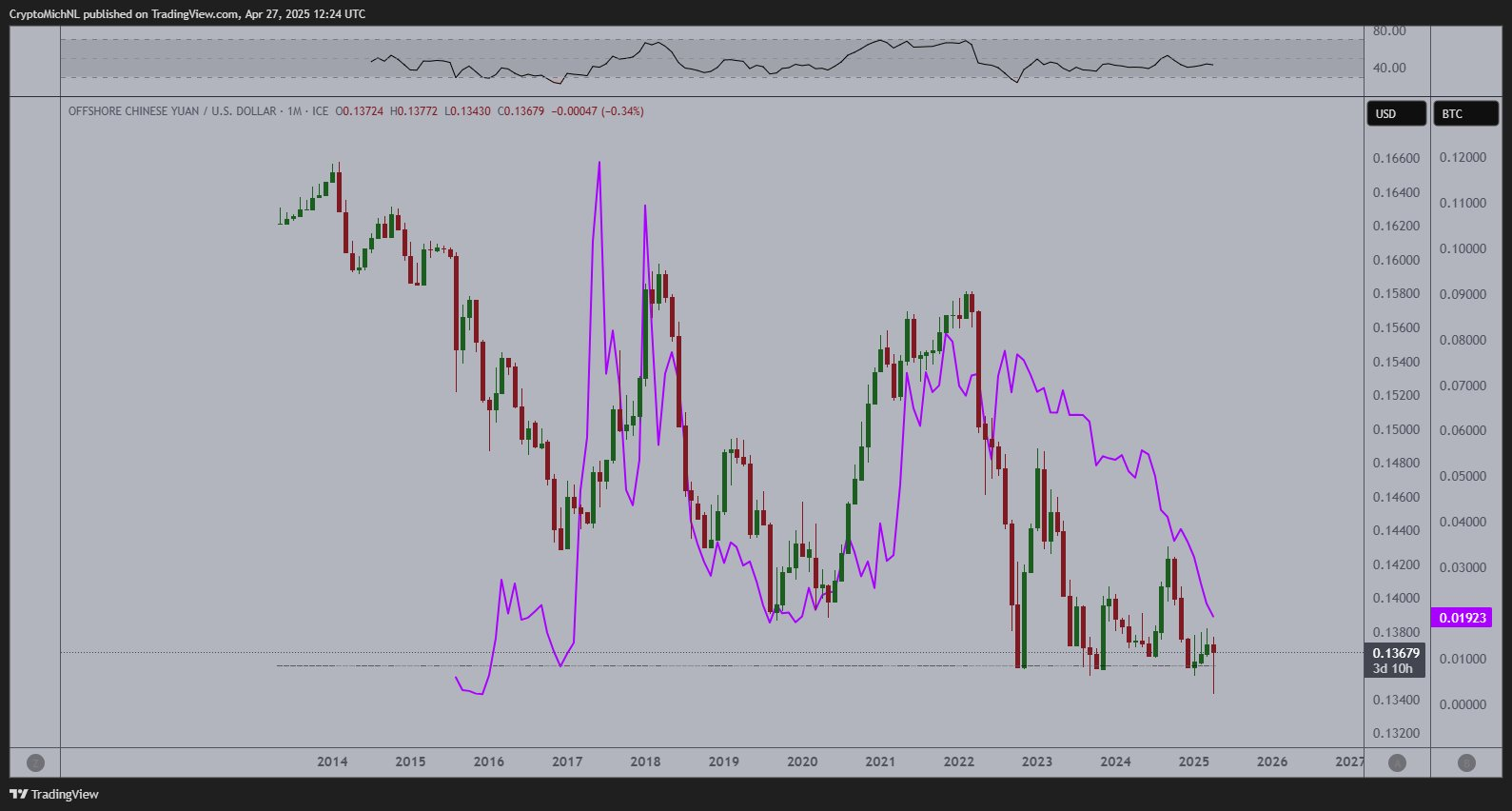 Prominent crypto analyst Michaël van de Poppe, featured on Daily Hodl, has predicted a substantial bull run following one of the longest bear markets in history. He cites three primary catalysts: increased global liquidity due to renewed central bank stimulus measures, a potential peak in gold's RSI (Relative Strength Index) historically indicating a shift towards risk-on assets, and a rebound in the Chinese yuan (CNH) and ETH/BTC, signaling the start of a multi-year altcoin cycle. This confluence of macroeconomic factors has only occurred twice before in crypto history, both times preceding massive altcoin growth.