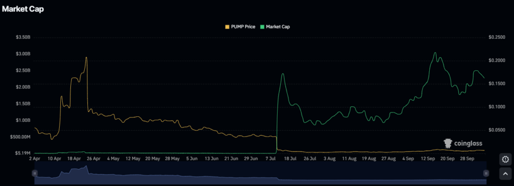 - Pump (PUMP) displayed signs of recovery, with market capitalization strengthening since early September, suggesting renewed confidence and improving liquidity.