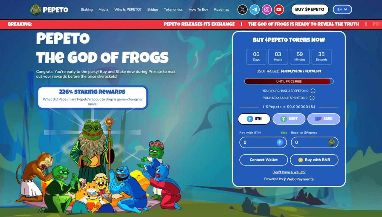What is Pepeto (PEPETO)? Pepeto is an Ethereum meme coin presale that pairs culture with real tools: a zero-fee exchange, a cross-chain bridge, and Staking Staking involves actively participating in transaction validation (similar to mining) on a PoS-based blockchain. Users who hold the minimum required balance of a specific cryptocurrency can validate transactions and earn rewards. These rewards are set by the network and are then sent to the user’s wallet.