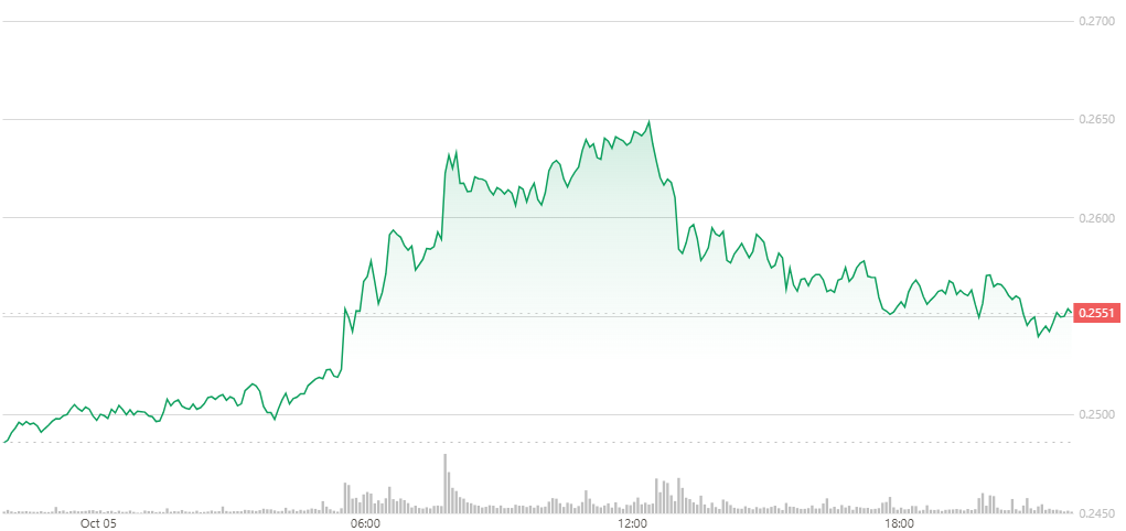This steady performance suggests consistent accumulation near the $0.25 support level, which remains a key psychological threshold. Sustained buying activity indicates improving short-term sentiment, supported by increased retail participation. If momentum holds, Dogecoin could challenge the $0.27–$0.28 resistance area in the coming sessions.