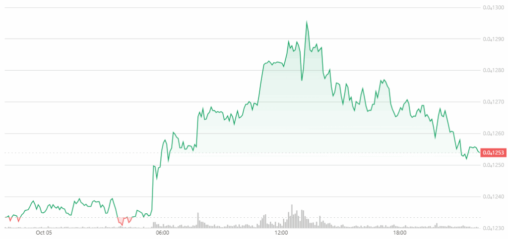 Shiba Inu rose 1.53%, trading at $0.00001253, with a daily high of $0.00001295 and a low of $0.00001230. The token’s chart reveals a similar pattern to DOGE, with an early surge followed by stabilization through the afternoon. SHIB’s market capitalization reached $7.38 billion, with 24-hour trading volume at $174.10 million, signaling steady participation from the community-driven market.