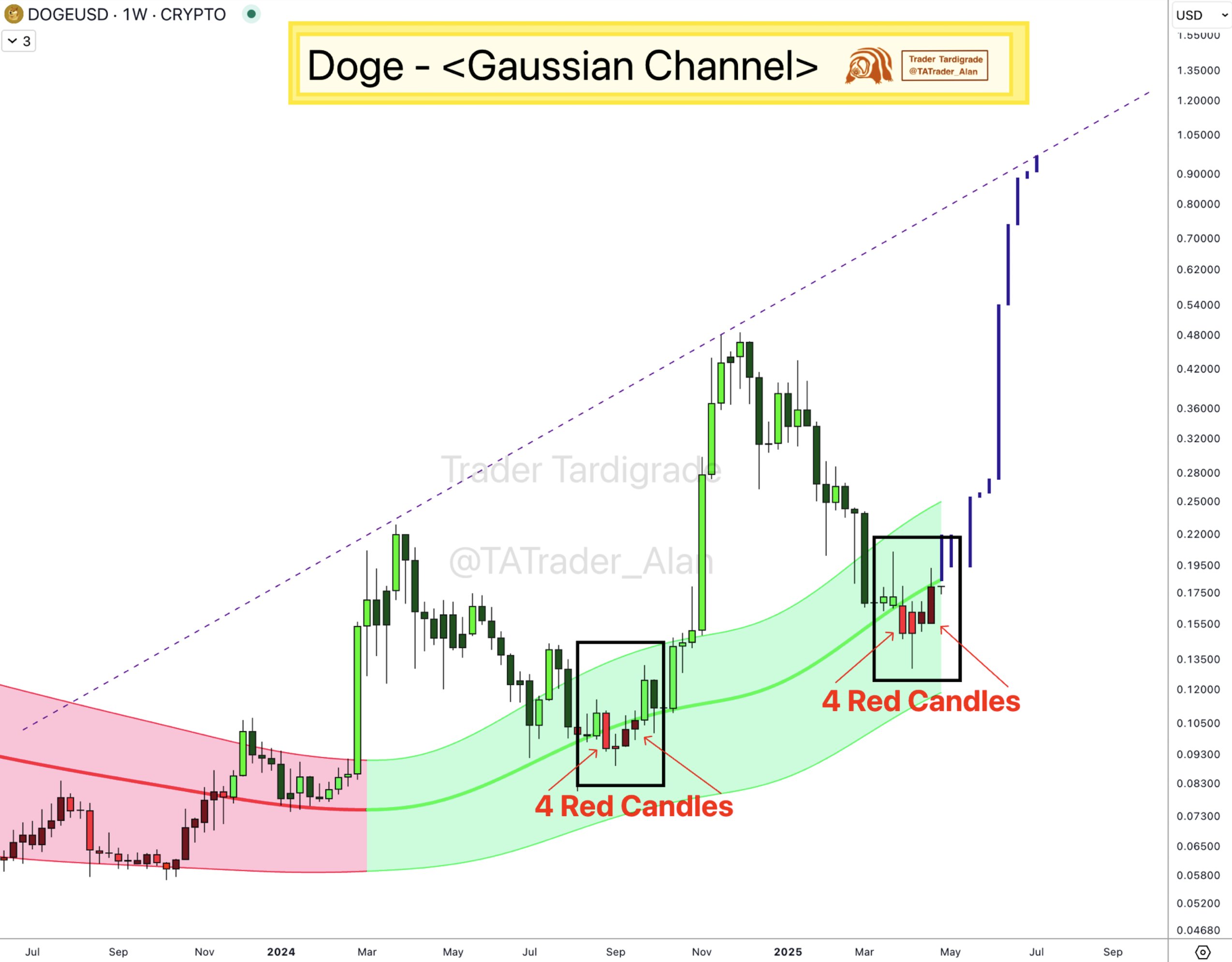 Dogecoin currently trades near $0.18, experiencing a minor daily dip of roughly one percent. Despite Bitcoin's strength, recent volatility has made altcoin investors cautious. However, a prominent market analyst predicts Dogecoin could reach $1, suggesting a potential upward trend. Technical analysis, specifically the weekly chart, indicates a possible short-term recovery.