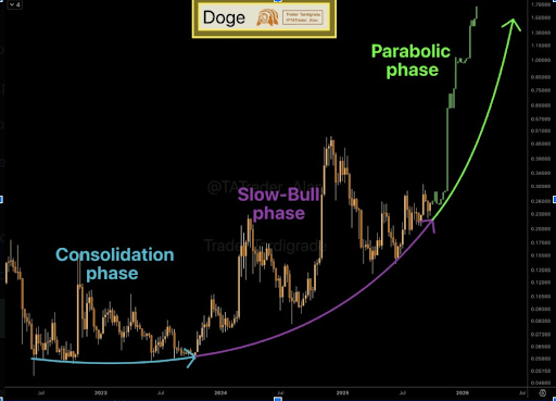 Other analyst stated that the greatest meme coin is in a parabolic stage of this cycle and DOGE is about to break out.