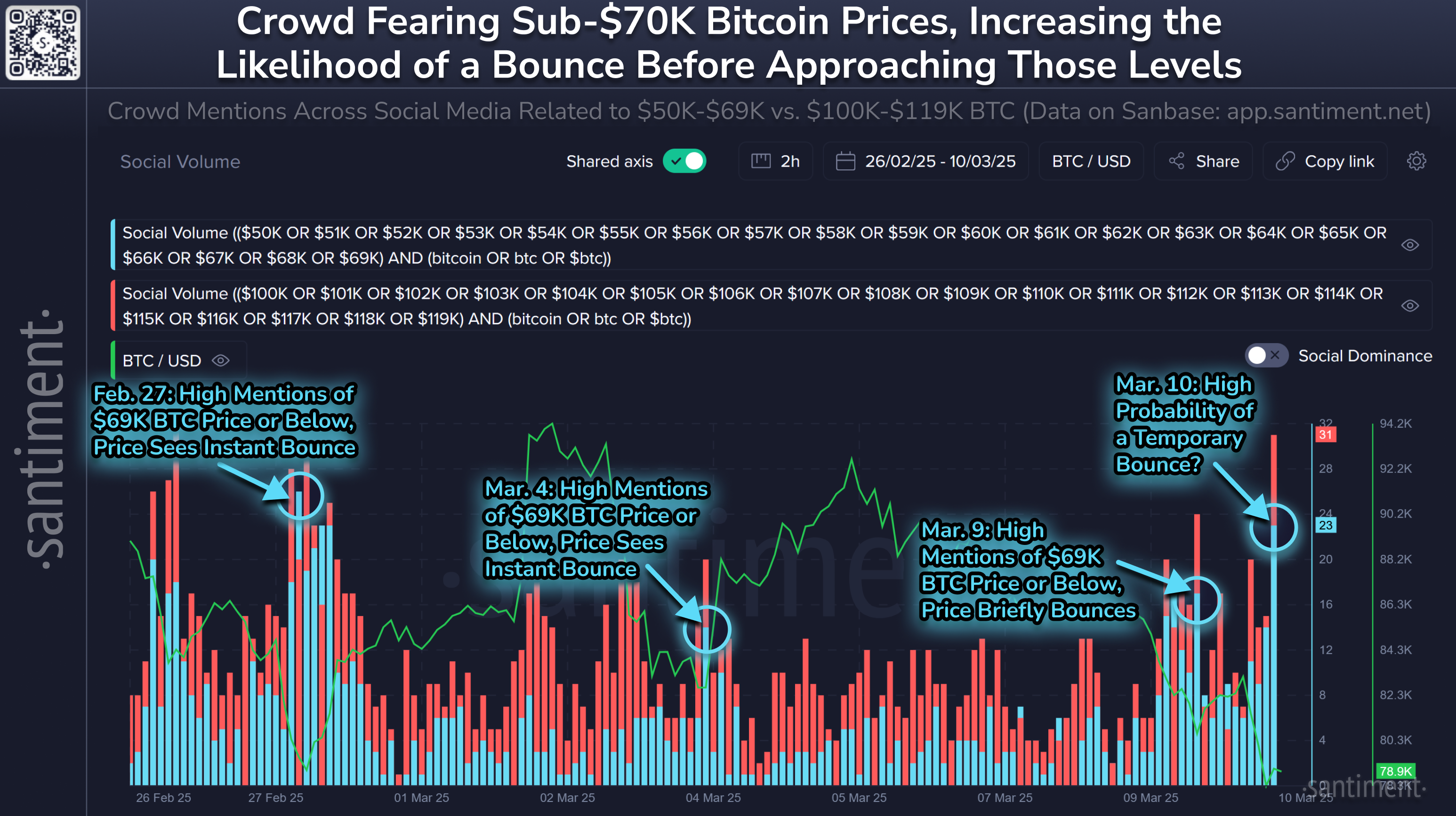 Despite the current downturn, Santiment observes signs of renewed accumulation by long-term holders. The analysts suggest a potential market recovery could be triggered by increased buying from major Bitcoin holders, widespread trader losses, and a heightened sense of fear and uncertainty reflected on social media.