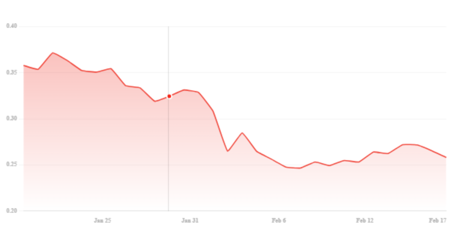 Dogecoin has witnessed a significant decline in the past month, dropping 35% and causing concern among investors. Currently trading at $0.254, Dogecoin has faced a 4% drop within the last 24 hours.