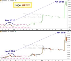 Dogecoin's 2025 Chart Mirrors 2020 Pattern Before Rally