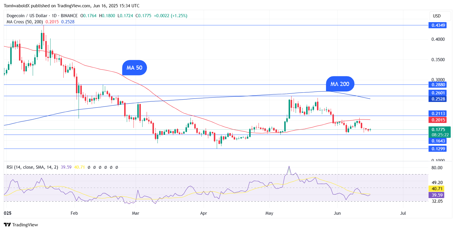 Dogecoin experienced a five-day decline from a high of $0.206 on June 11th, testing support around $0.17 on June 13th before a slight recovery in Monday's trading session.