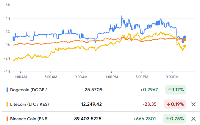 While DOGE experienced sharp price fluctuations and a net gain, BNB demonstrated steady upward momentum with minimal volatility. Conversely, LTC encountered downward pressure despite an initial rally. The price behavior of each asset provides a unique perspective on investor sentiment throughout the trading day.