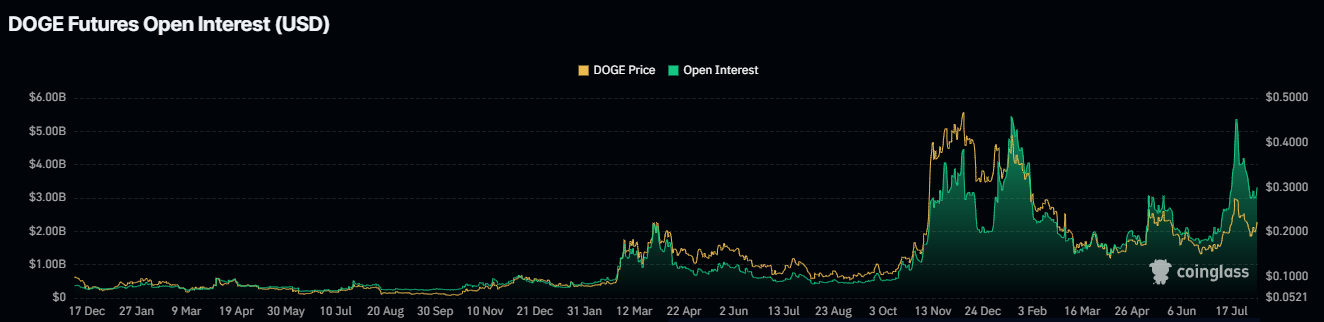 Each peak coincided with DOGE trading above a certain level. Open interest approached a notable amount during these rallies, followed by declines as traders took profits and markets corrected.