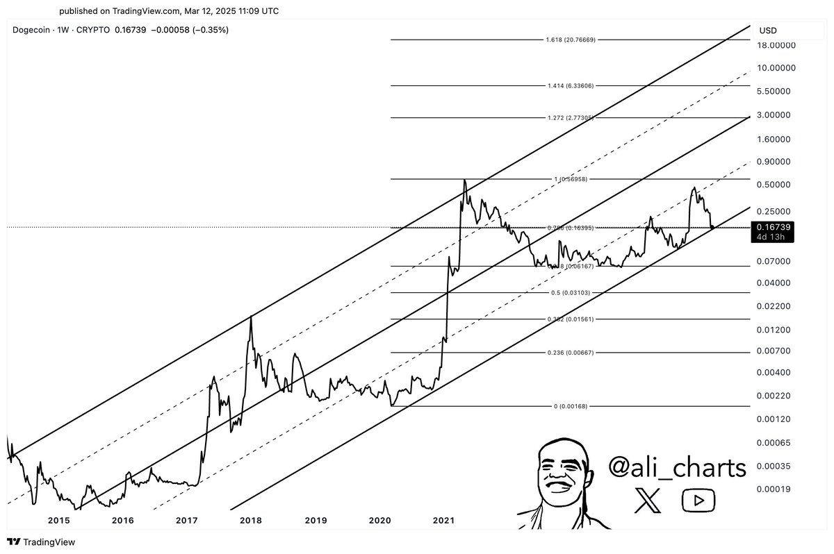 Dogecoin (DOGE) is exhibiting strength, currently holding a crucial support level within an ascending channel, suggesting a potential price upswing. Analyst Ali Martinez highlights this support at $0.16 as key; if it holds, a significant rebound is likely.