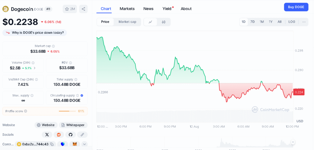 According to sources, the Dogecoin price experienced a decline of nearly 7%, bringing it precariously close to its crucial 22-cent support level and igniting renewed concerns among traders and long-term holders alike.