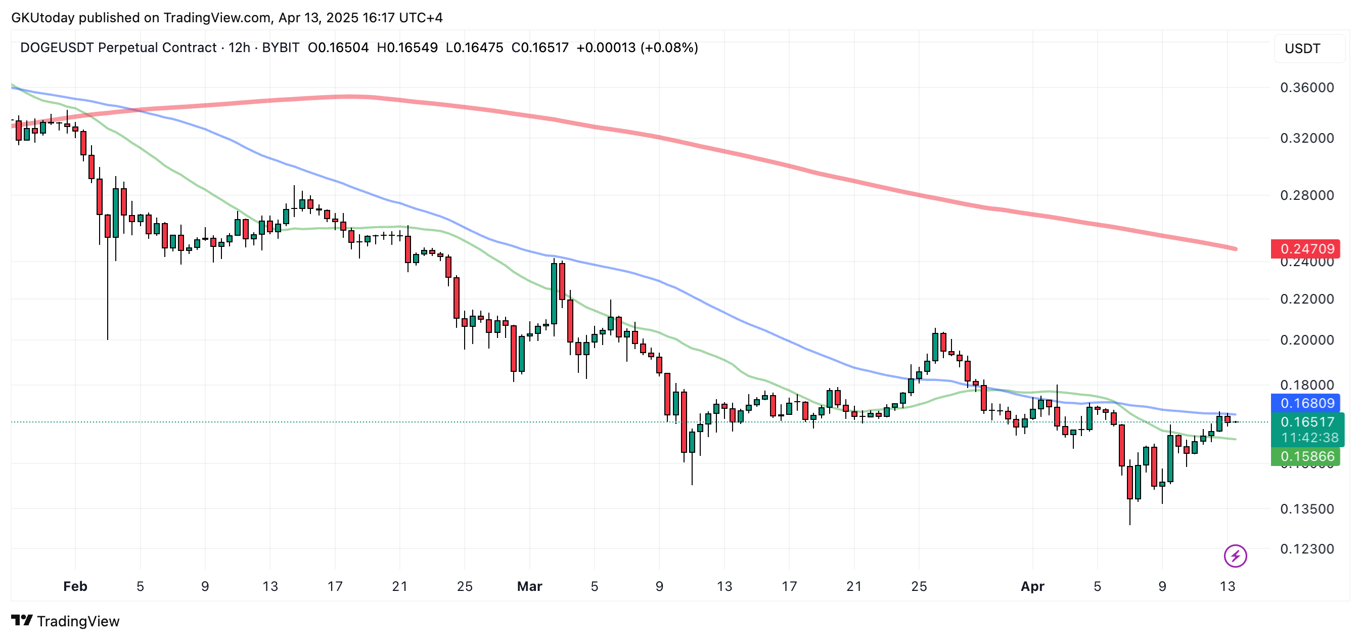 Dogecoin (DOGE), a major and highly popular meme coin, shows a technical structure hinting at a potential bullish upswing. However, a key obstacle stands in the way of significant price movement: the 50-day simple moving average.