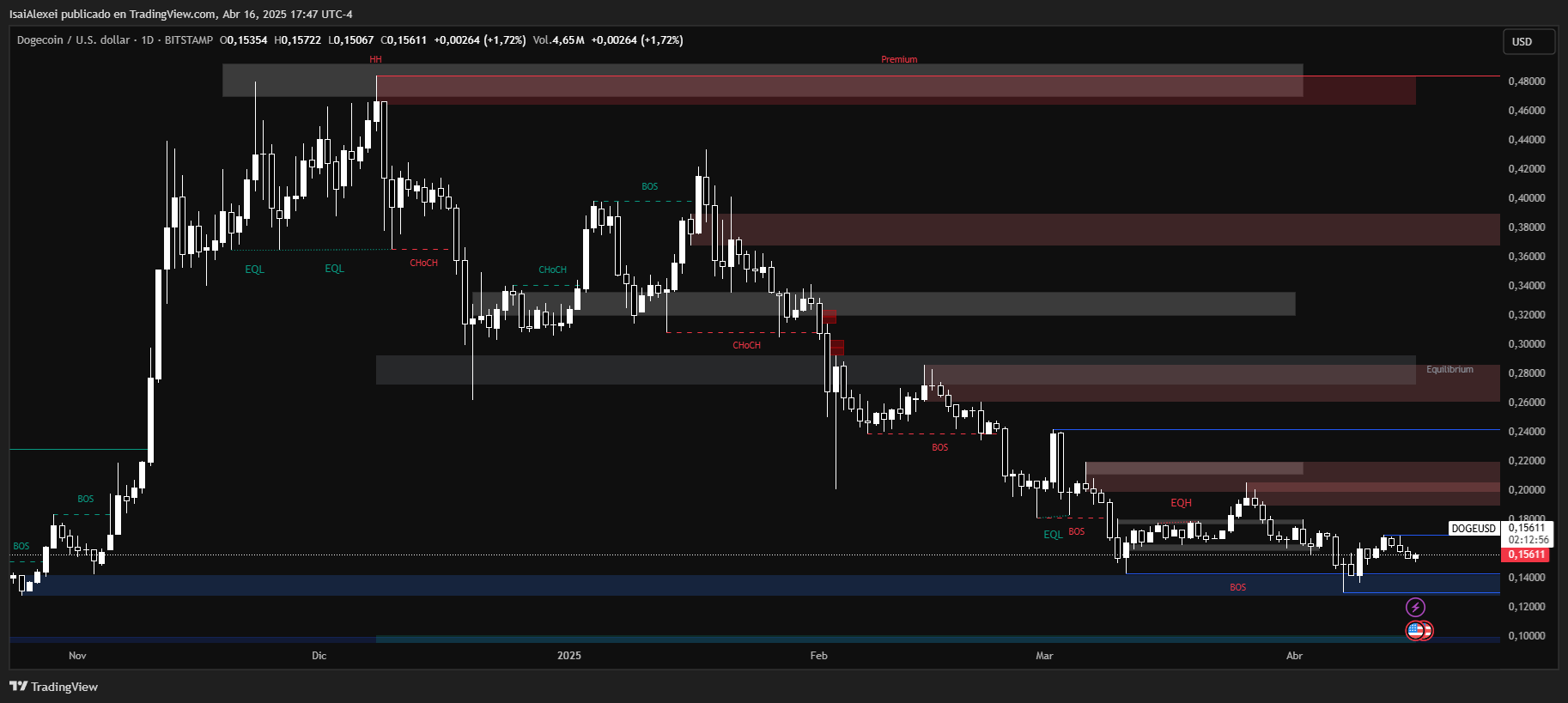 DOGE is currently trading at $0.1564, representing a 1.86% increase over the past 24 hours and a 10.03% increase over the week. However, it remains 50.41% below its January price. The token has rebounded from support near $0.148 and is now facing resistance between $0.166 and $0.169. A decisive close above this level could potentially push DOGE towards $0.185. Trading volume remains relatively low, indicating buyer hesitation.