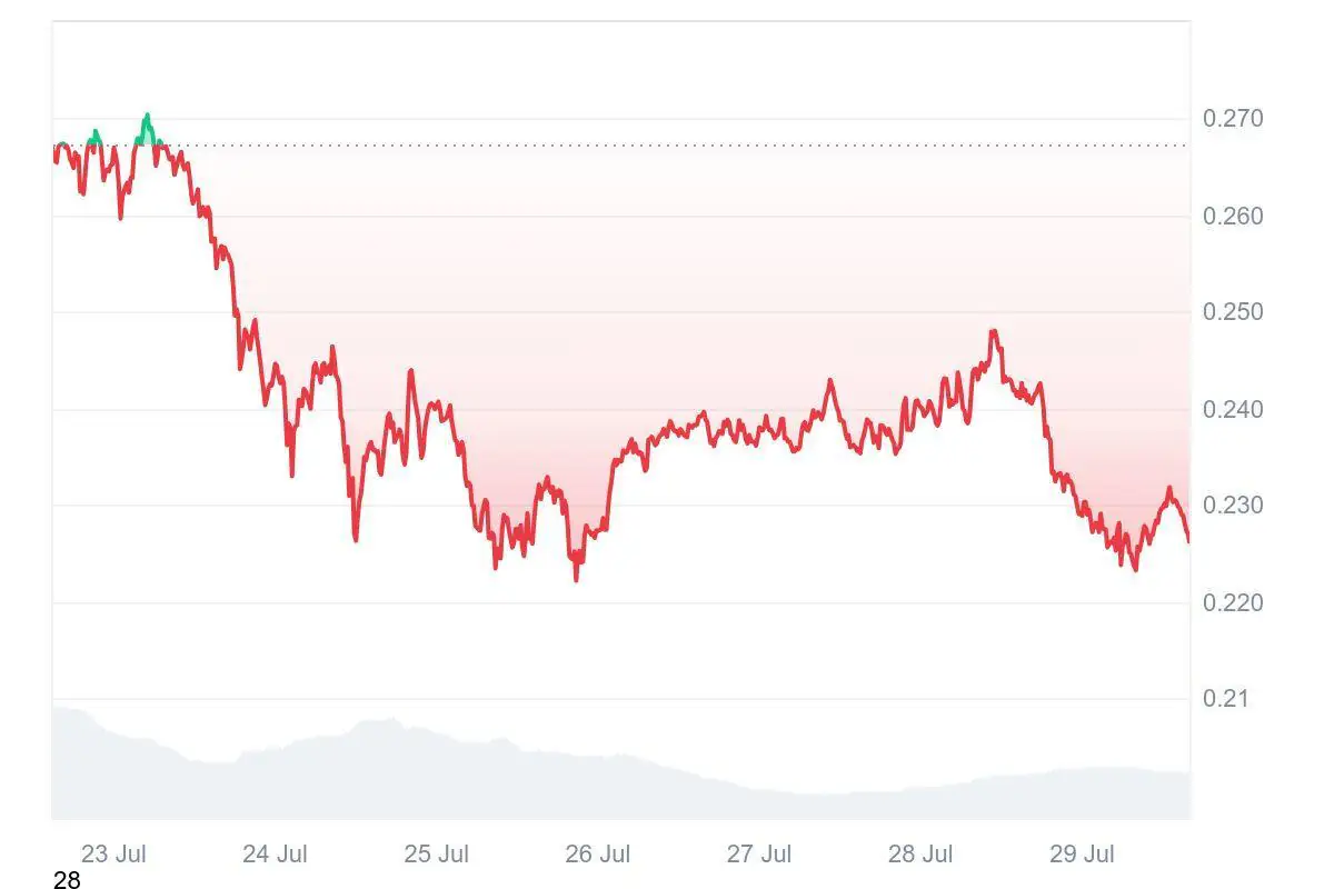 However, the current landscape is different. Over the past week, Dogecoin has experienced a 15% decline, trading around $0.22 with a market capitalization of $34 billion. While it maintains a dedicated community, overall interest appears to be waning.