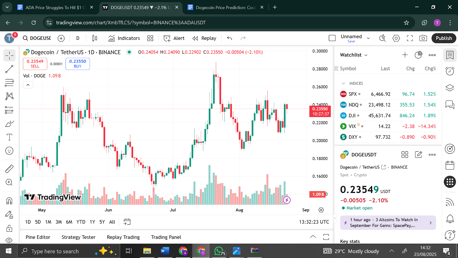 Dogecoin has consistently printed higher lows over recent months, showing that buyers are defending key support zones. According to crypto analyst Ali Martinez, “Holding the $0.21–$0.22 base is critical for DOGE to maintain its recovery trajectory.” The coin is consolidating in bullish patterns such as a converging triangle and cup-and-handle, signaling potential upward moves.