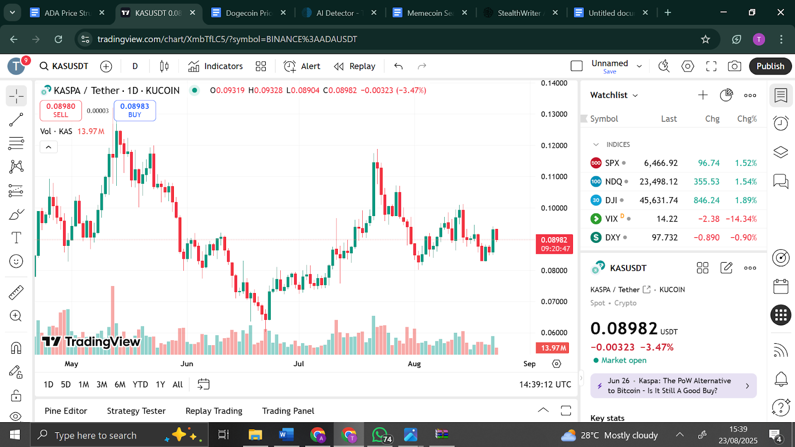 Kaspa price has also started to capture investor attention as it trades at $0.09048 with daily volumes approaching $99.6 million, reflecting steadily growing liquidity. Momentum has been building quietly, and with trading volumes on the rise, the Kaspa price may see short-term breakouts if interest continues to expand across exchanges.
