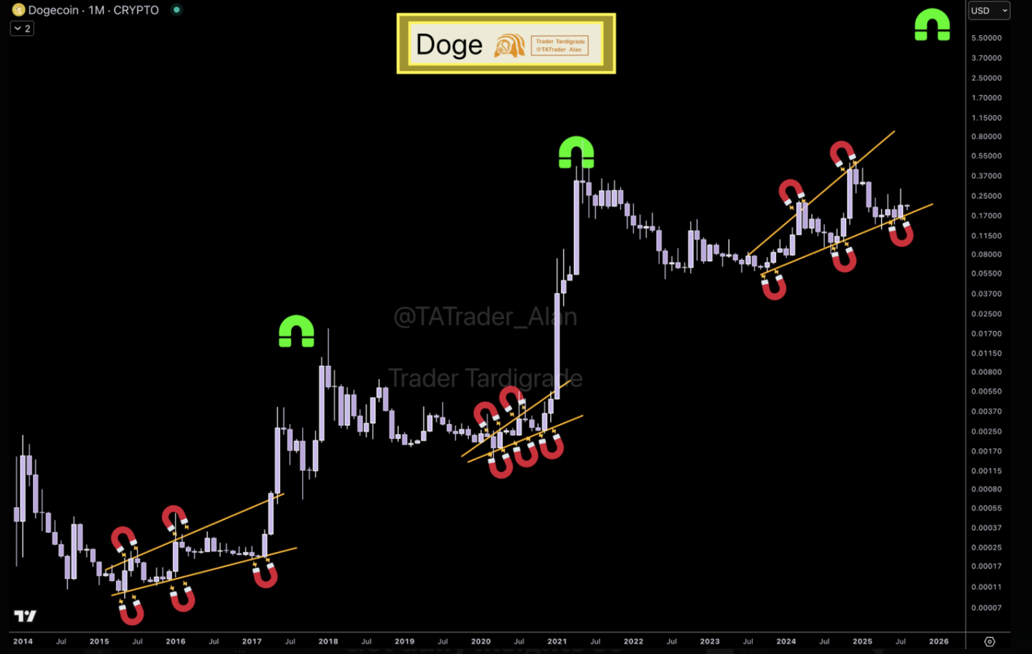 Dogecoin Monthly Ascending broadening wedge : Source : X
