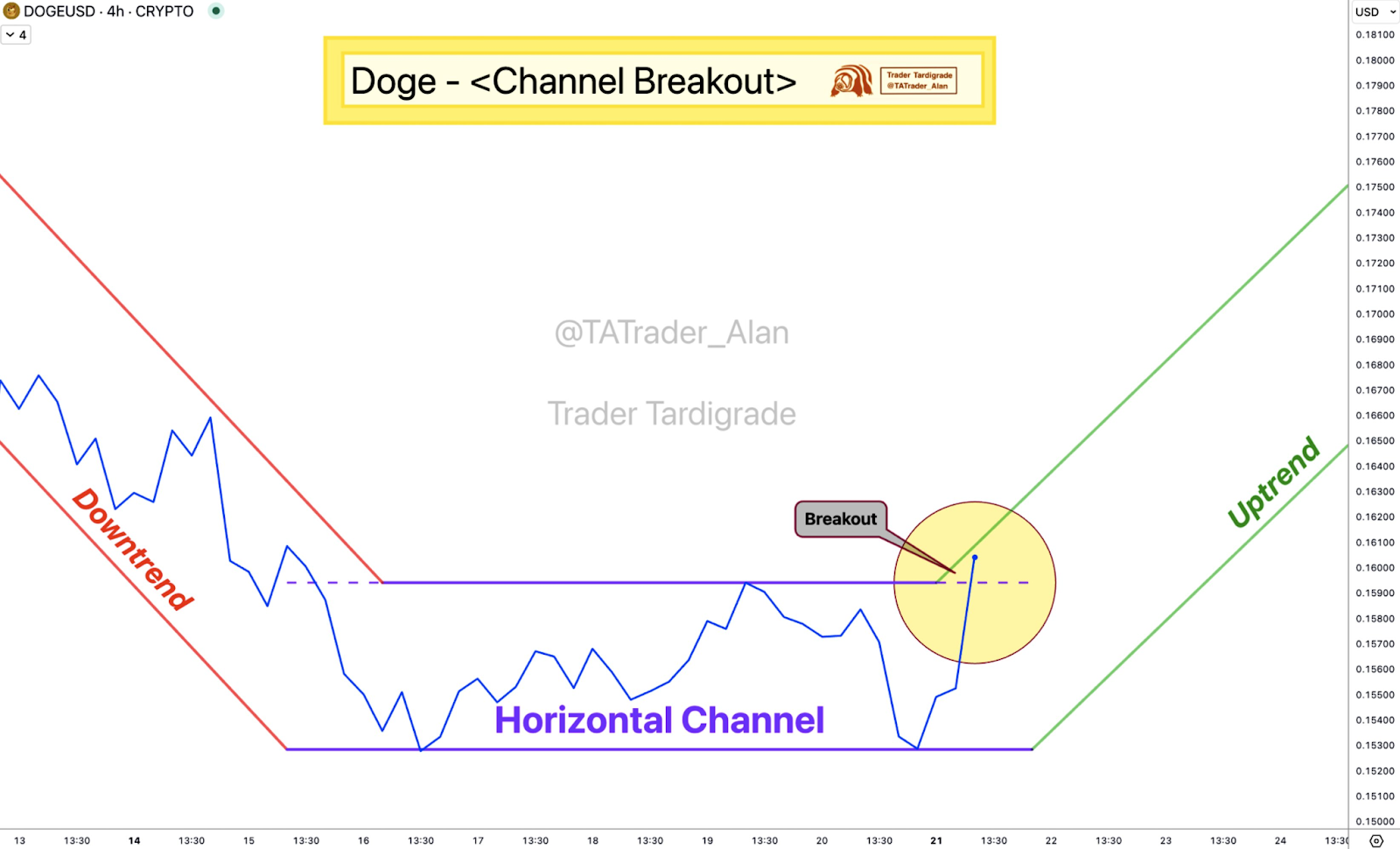 Dogecoin saw a notable technical breakthrough on April 21, 2025. A 4-hour candle closed above the upper boundary of a triangle pattern, reaching $0.15, a move confirmed by Trader Tardigrade on X (formerly Twitter). This breakout was accompanied by substantial trading volume, sparking significant market interest and anticipation of a sustained upward trend.