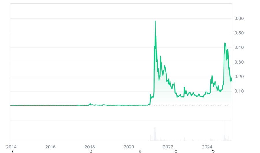DOGE has consistently maintained strong support around $0.10, demonstrating steady investor demand despite market fluctuations. Its history of significant rallies and corrections highlights the high speculative interest and external factors influencing its price.