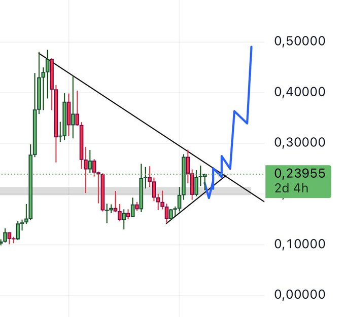 Swiss has shared a chart showing the zig-zag breakout path, with short-term volatility expected before a longer-term thrust higher. Above $0.30, the next areas of support correspond to $0.40 and $0.50, which are the zones associated with previous liquidity pools.