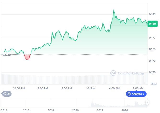 The short-term price movement reveals a consistent increasing trend, where the support is created at the level of $0.1739 and the resistance is created at the level of $0.182. This pattern of consistency indicates that the current buying activity has been driven by long-term interest as opposed to the volatility that is speculative, which is consistent with the long-term accumulation witnessed in the past cycles.
