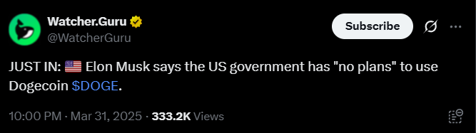 Elon Musk Denies U.S. Government Dogecoin Adoption