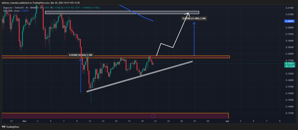 Amidst current market fluctuations, Dogecoin (DOGE) is exhibiting bullish price action, suggesting significant upward potential. On March 20, 2025, the meme coin experienced a 2% price increase, hinting at a larger rally.