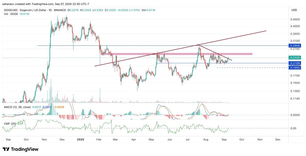 The MACD shows a rise in the buying pressure after sustaining a month-long bearish pressure, while the CMF is attempting to rise above 0. This suggests the money flow is positive, which could lead the levels towards the pivotal zone if CMF remains incremental. However, this is just a step higher, as the real target lies at the main ascending trend line, and a rise from $0.33 to $0.35 could trigger a fresh bullish wave.