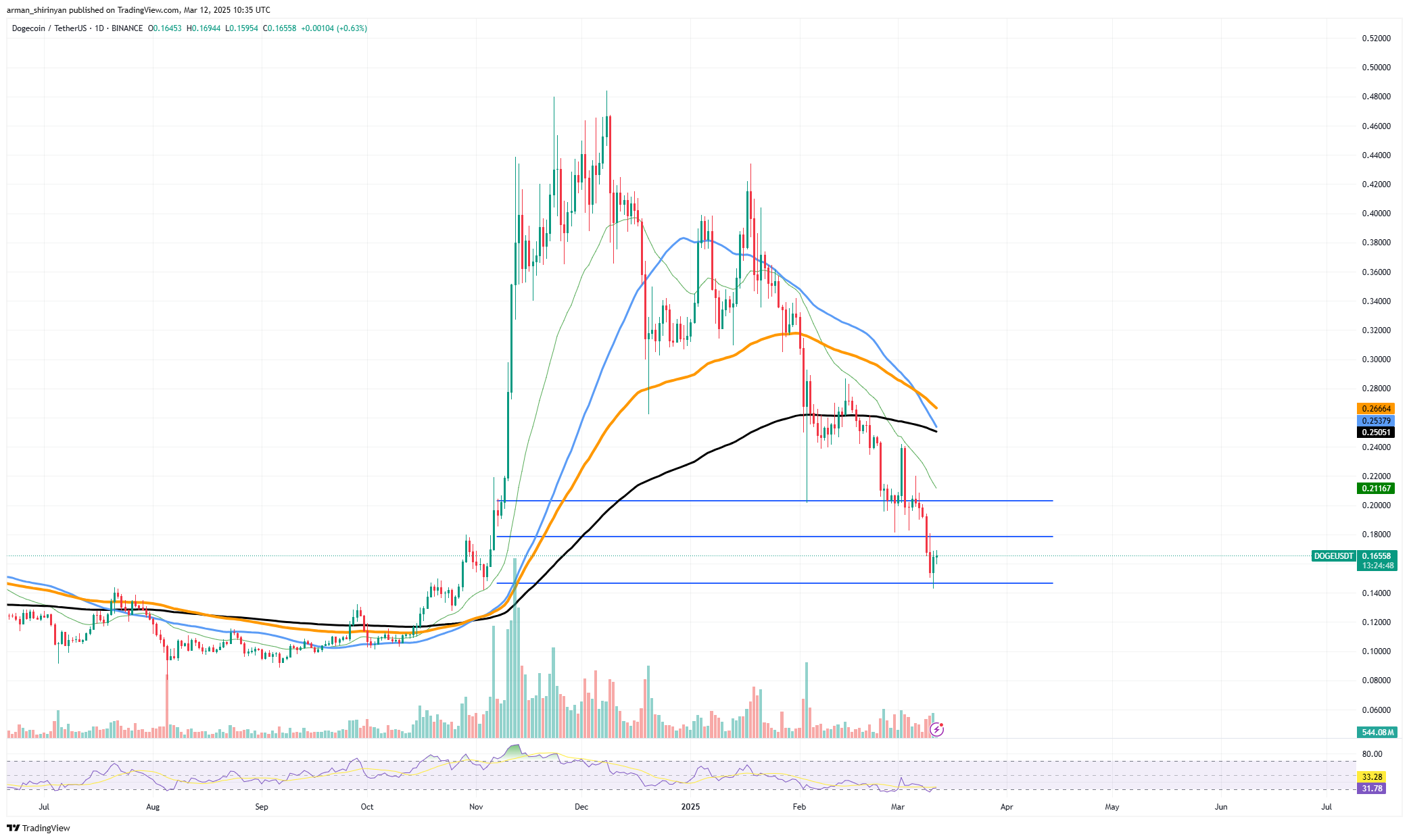 However, DOGE remains below key moving averages, and the overall trend is still bearish. A significant threat is the impending "death cross"—where the 50-day moving average crosses below the 200-day moving average. This bearish signal, if confirmed by sellers regaining control, could trigger further declines.