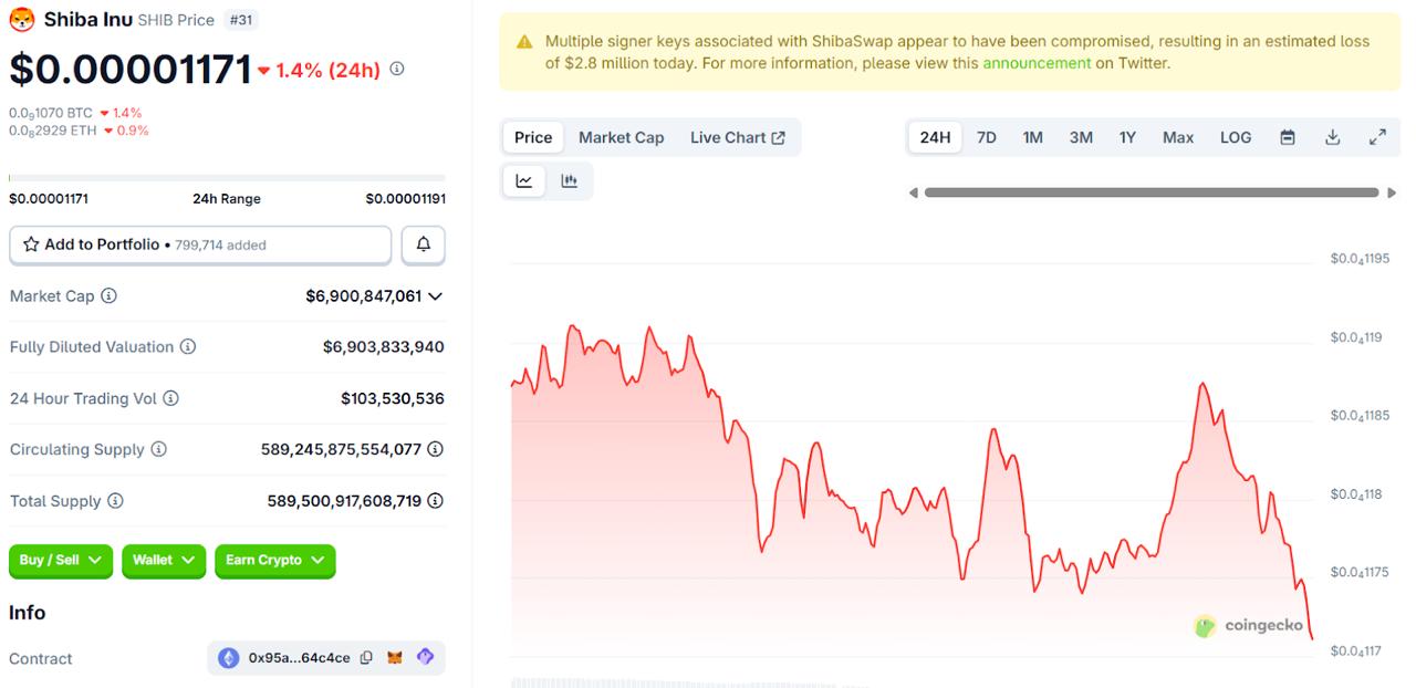 Shiba Inu Price Chart | Source: CoinGecko