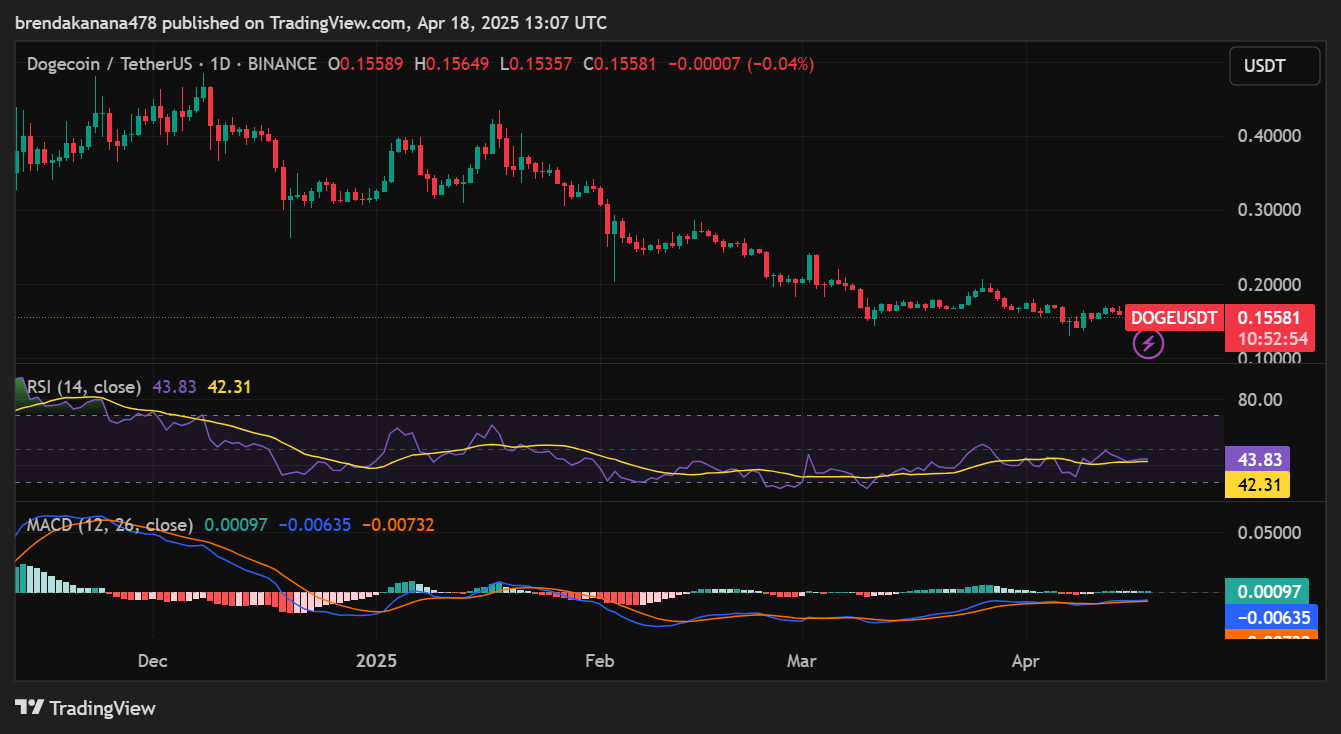 Technical indicators suggest a potential reversal, with analysts adopting a bullish stance. TradingView charts show DOGE consolidating after recovering from the $0.1515 support level. The Relative Strength Index (RSI) sits at 43, a neutral zone with potential for upward movement. The MACD histogram is gradually shifting towards bullish territory, hinting at a potential sentiment change.