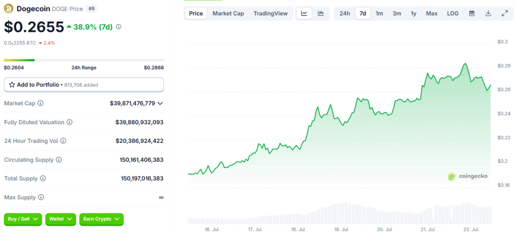 Dogecoin $DOGE has a lot of room to go up as the next major resistance barrier is $0.36! pic.twitter.com/1klZiaDkUk— Ali (@ali_charts) July 21, 2025